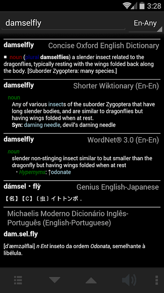 市场上速度最快,格式最多的字典应用程序。完全支持Lingvo,Babylon,StarDict,lingoes和Dictd字典文件。显示完整格式,颜色,图像和声音的文章。查找速度非常快。您现在可以在Android设备上随身携带所需的所有词典!