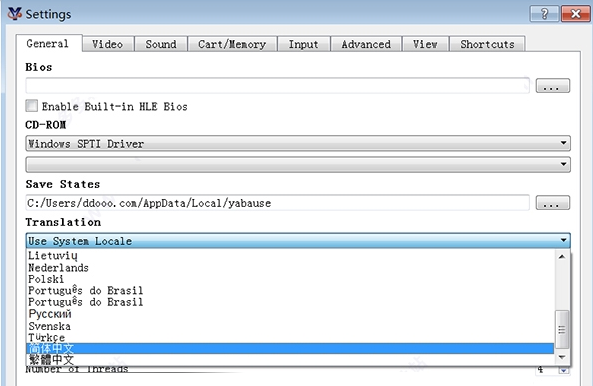 2、Yabause模拟器与BIOS的目录不能有中文。
