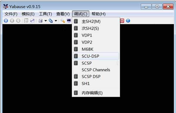 7、调试功能:主SH2(M)、次SH2(S、 VDPT、 VDP2、 M68K、 scu-dsp、 SCSP、 SCSP Channels、 SCSP DSP、 SHI、内存编辑(E)。