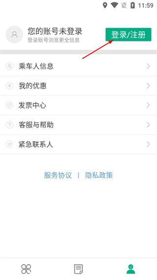 2、在个人中心页面看到您的账号未登录提示,点击右侧的登录/注册按钮。
