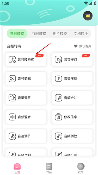 1、打开音频转换APP,点击“音频转格式”,进入本地音乐选择界面。