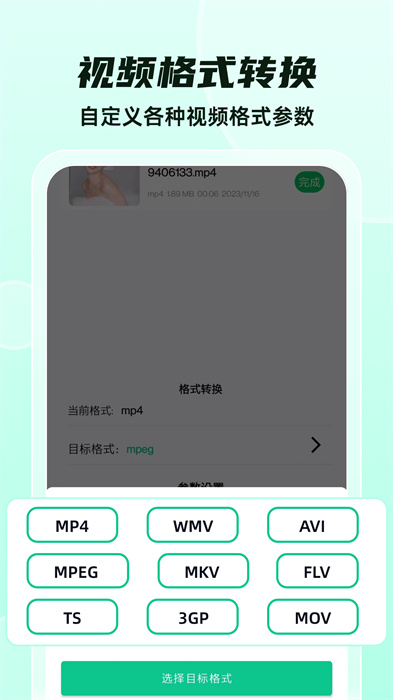 支持超多格式转换,格式转换全能王支持将视频转换到mp4、mkv、mov、ts等格式;一键转换,超级方便;