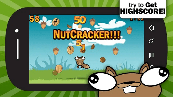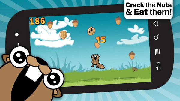 《松鼠吃坚果 Noogra Nuts》是一款很Q的重力感应游戏。游戏的主角是一只独特的小松鼠,控制它左右移动,向上跳跃,用头顶破坚果,吃到一个果仁会有一定的加分。