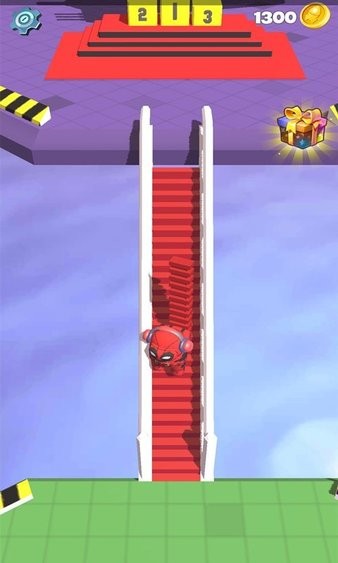 3.玩家在游戏中身穿不同颜色的皮肤,在场地中收集与自己肤色相同的砖块,将其铺设在桥梁框架上搭建出属于自己的桥梁.