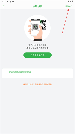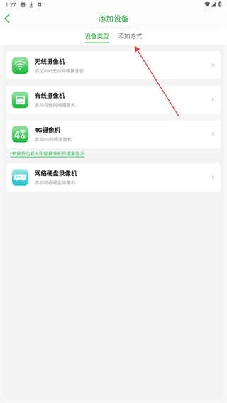 3、在该页面内,点击设备类型右侧添加方式的按钮。