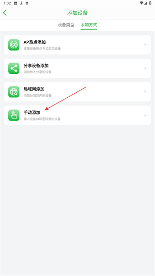 4、在添加方式的页面内,选择并点击手动添加的按钮。