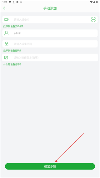 5、输入设备ID、密码以及别名,再点击确定添加即可。