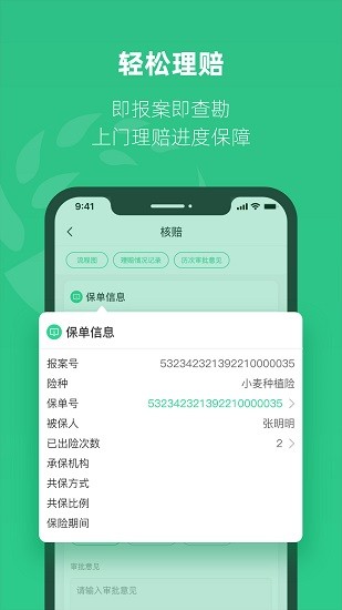 农险一站式移动作业平台,补充外出作业或非工作时间处理农险业务的场景,提供农险按图承保、线上验标、线上查看、按图理赔的功能,以及测亩仪、OCR识别等工具,有效提升了农险保险承保理赔的时效性和有效性。