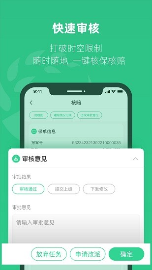 支持查勘人员随时随地记录受灾情况和死亡标的信息,并实时同步到新核心系统。