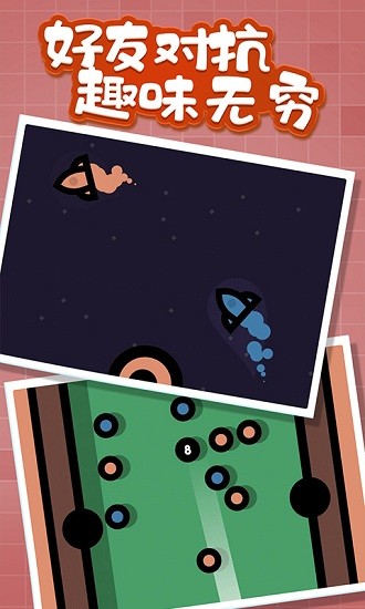 消消乐派对里面收录了各种不同类型消除玩法的手游,像三格棋、台球、五子棋、气球等等,将不同的玩法都做成消消乐也是比较有趣的了,游戏支持双人游玩,可以和你的好朋友来一个对战,有兴趣的话可以来体验一下哦!