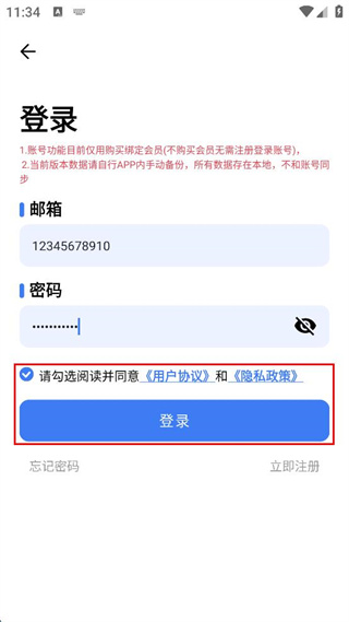 4、勾选同意用户协议和隐私政策后点击“登录”。