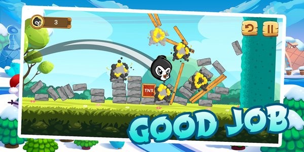 将弹弓上的企鹅弹出去,砸到全部小鸟、猪敌人才能过关。