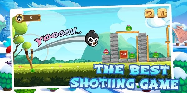 愤怒的企鹅是由弹弓拍摄的射击游戏,主要灵感来自于弹弓鸟射击游戏。有几种不同类型的鸟类使用。在最早的射击级别中,只有基本的红色鸟类和猪。