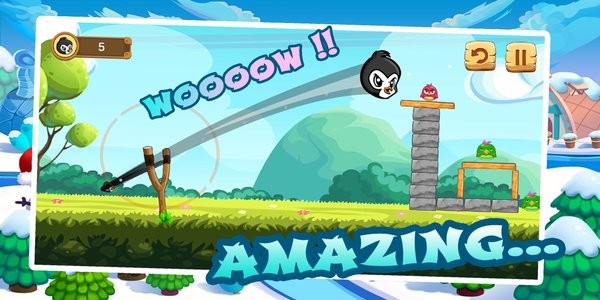 愤怒的企鹅投掷机(angry penguin)是玩法仿照愤怒的小鸟的飞行射击手游,在这里气势汹汹的企鹅们将会被当成炮弹投掷出去,将对面的违章建筑都拆掉,消灭自己的敌人小鸟们和猪头军队,看看谁瞄的最准吧!