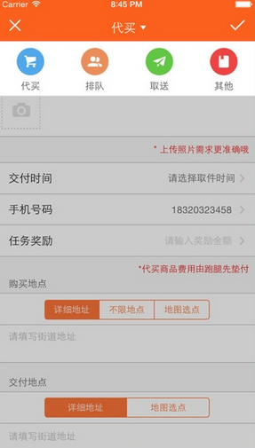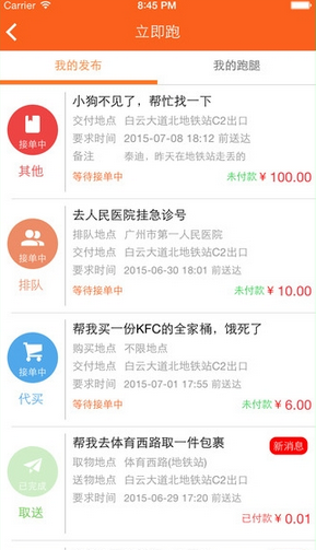 9、立即跑有代买服务、排队服务、送取服务、费用代缴、送修服务等和其他的多样化的优质服务,同时我们也可以成为有偿提供线上、线下综合服务的平台。