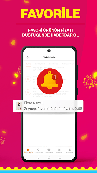 在Trendyol应用程序中享受特殊优惠券。将您喜欢的产品添加到收藏夹。感谢价格警报,当您喜欢的产品价格下降时,让我们通知您。