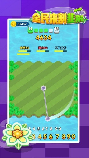 全民来割韭菜手游的玩法非常轻松解压,你需要使用一台割草机进行割草作业,滑动的轨迹不同所割草的效果也是不一样的,需要玩家们思考如何用最少的行动轨迹最快的将这些杂草进行割除,非常的考验玩家们的死牢能力观察力。