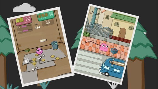 宠物不仅仅满足于食物,玩也很重要,在商店买绳子增加,宠物拿到绳子后可以选择一个礼盒打开,好东西就会加分,坏的东西就会扣分。