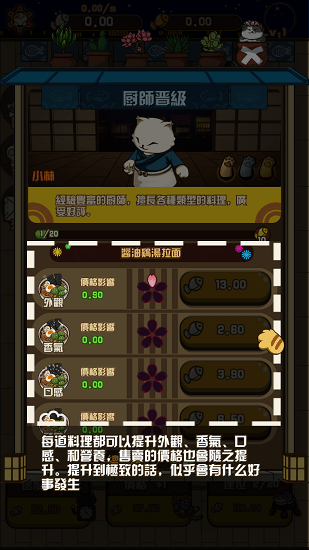 3、厨师猫咪是为你提供大量收益的基础,做出的菜越好吃你的生意越好收益越高。
