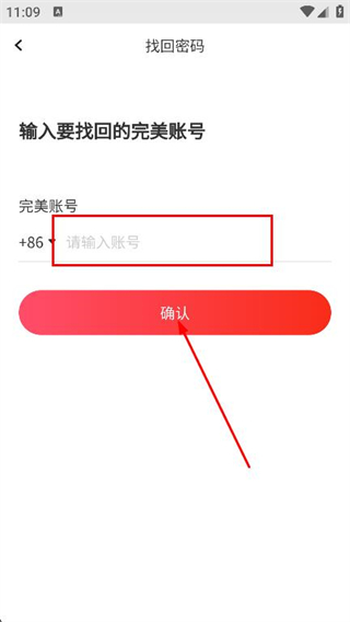 3、在找回密码页面,输入完美账号,点击确认按钮。