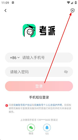 1、打开考派APP,在登录页面点击右上角的安全图标。