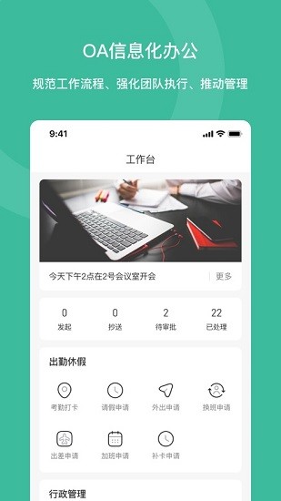 2、提高公司行政部门的办公效率,让您随时随地在手机上工作,
