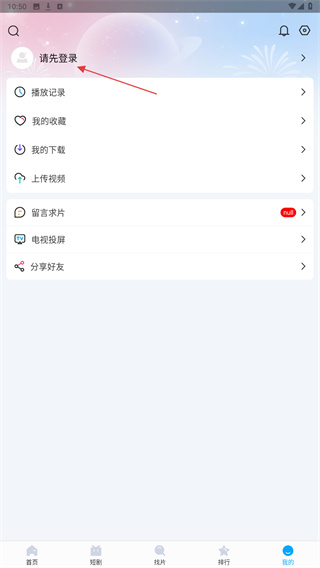 2、在我的界面内,点击上方请先登录的区域位置。