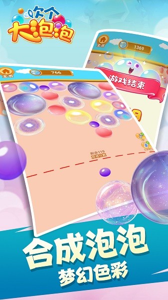 吹个大泡泡,趣味的泡泡合成小游戏,游戏操作简单,玩家仅需点击相同泡泡即可完成合成玩法,游戏中泡泡会从底部出现,玩家需要控制好泡泡上升的方位,来完成泡泡消除玩法,感兴趣的玩家可以下载体验一下!