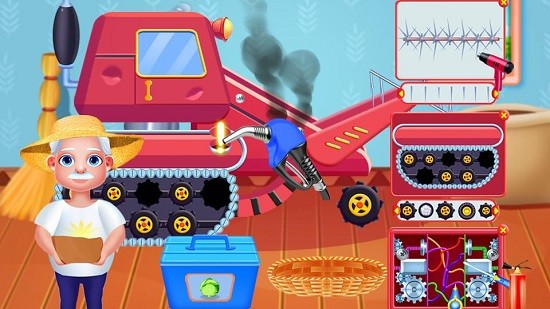 非常糟糕的是爷爷的收割机坏了,我们赶紧把它修好吧