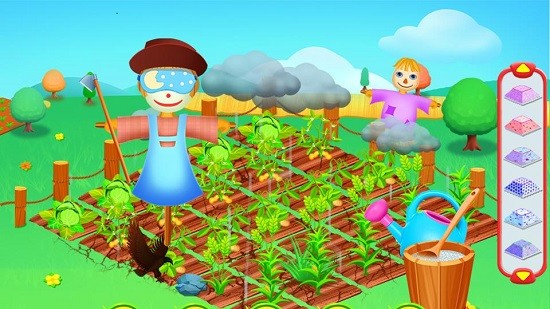 选择你喜欢的作物,把它们种在地里,给它们浇水,施肥,除害虫。好好照顾他们,才会丰收奥