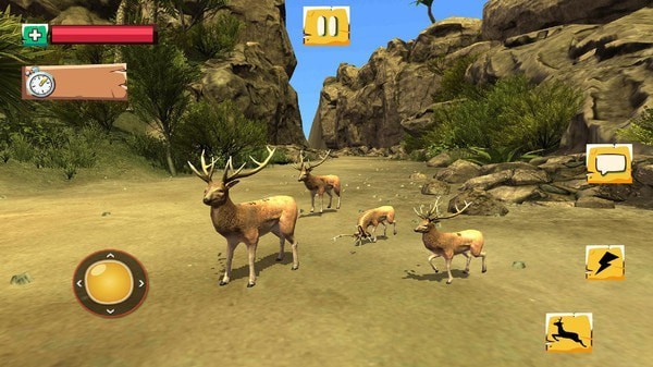 鹿家庭模拟器游戏中与鹿真实的在深林中进行生存挑战,与鹿群来寻找食物帮助你们生存下去,小心周围随机出现的各种捕食者!