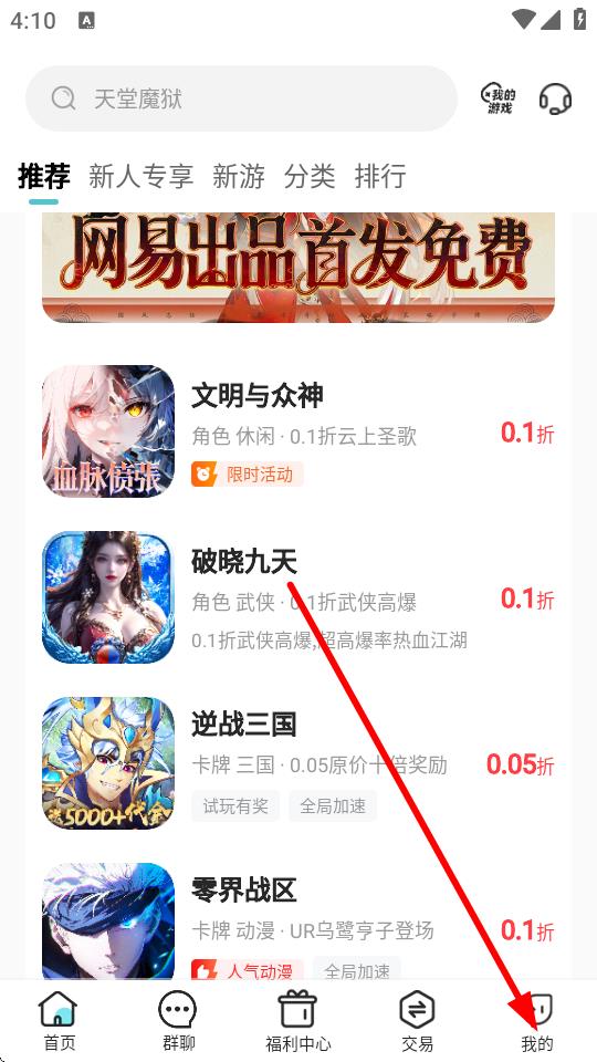 1、打开52玩手游app,点击底部导航栏最右侧我的选项。