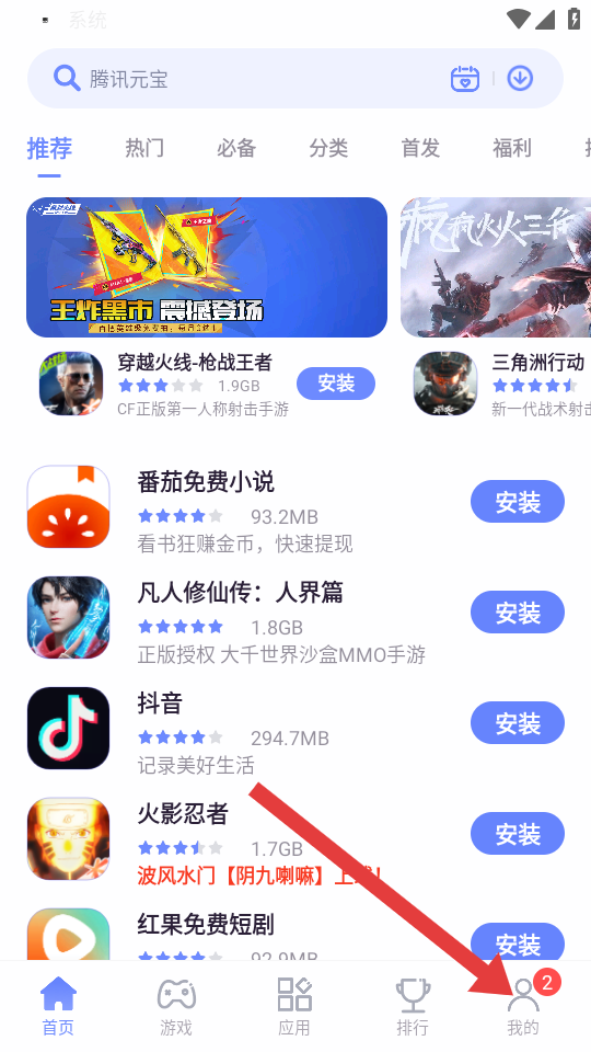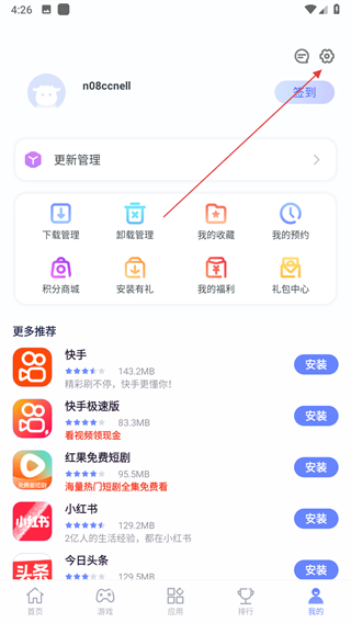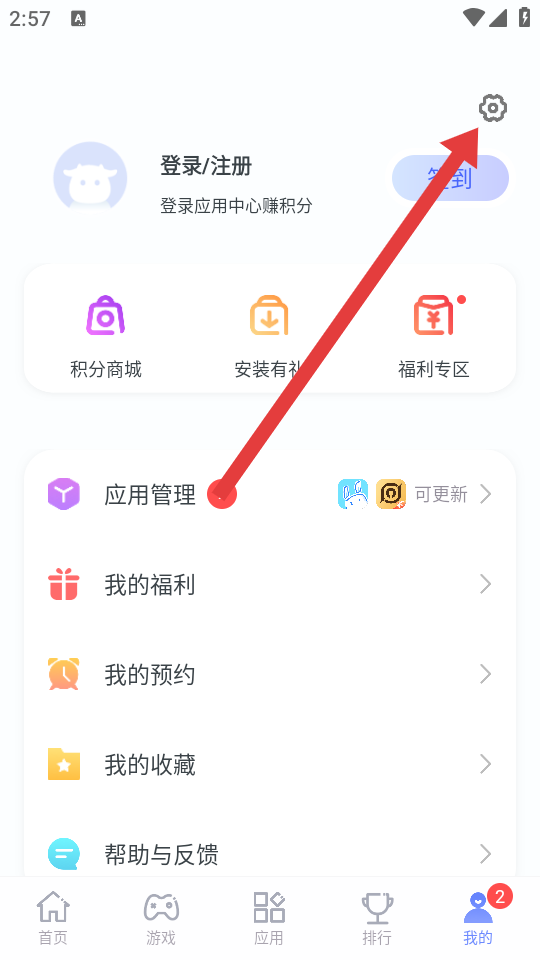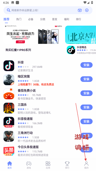 1、在红魔应用中心的首页页面,点击底部我的选项,进入个人中心界面。
