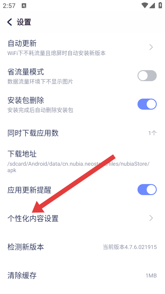 3、在设置页面,点击个性化内容设置选项,进入个性化内容设置界面。