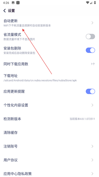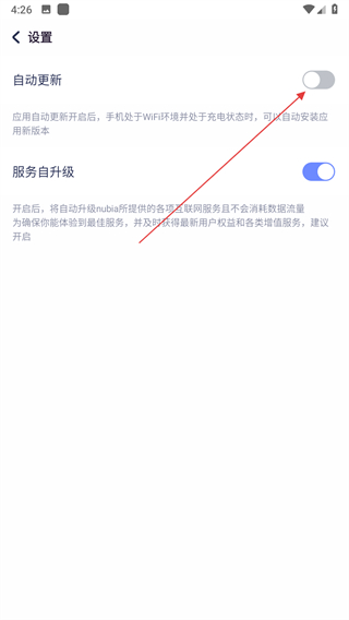 4、在自动更新页面,点击右侧的开关按钮即可。