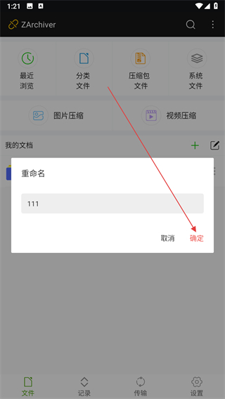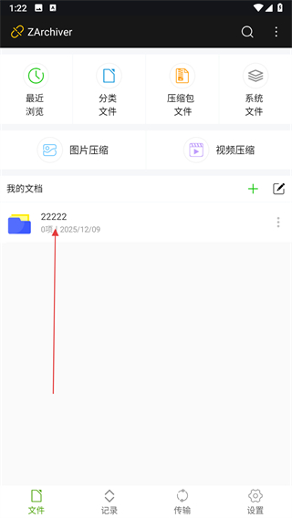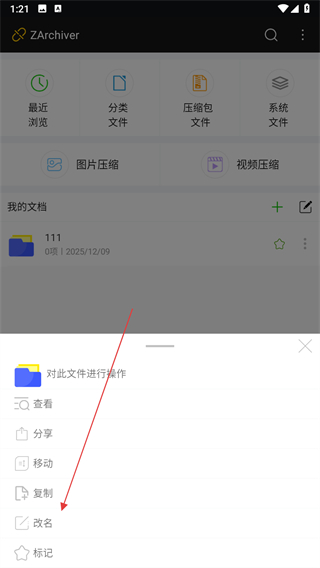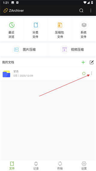 1、打开ZArchiver主界面,找到需要重命名的文件,点击文件右侧的三点按钮。