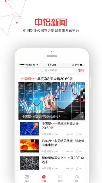 2.通过手机APP快速、真实、准确的推送资讯内容,力求满足社会各界对于中铝公司的信息需求,以流畅的用户体验和便捷的浏览方式打造国际一流企业的信息发布与交流平台。