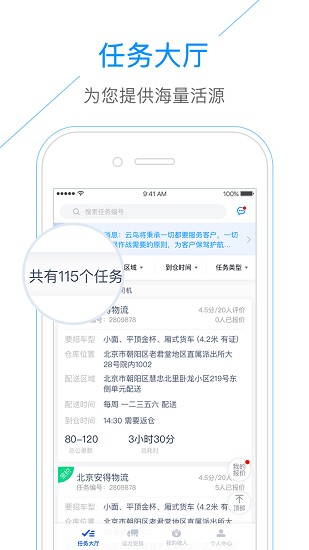 2、任务大厅,司机可以选择适合自己的任务报价。