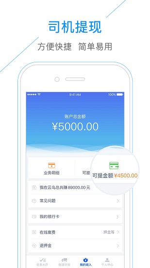 4、司机在平台提现金额的时候,没有任何的固定门槛,提现秒到账。
