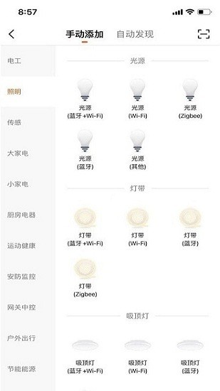 1、添加设备,提供了添加按钮,一键就能添加新的智能设备。