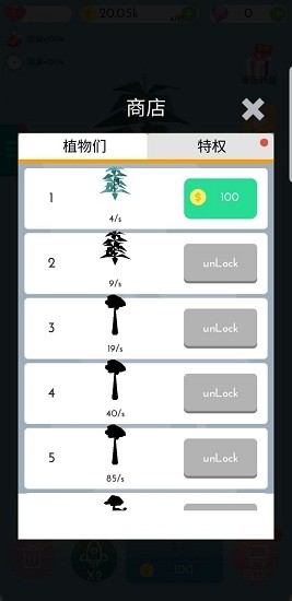购买植物并将它们合并到地块位置,解锁更多新树。