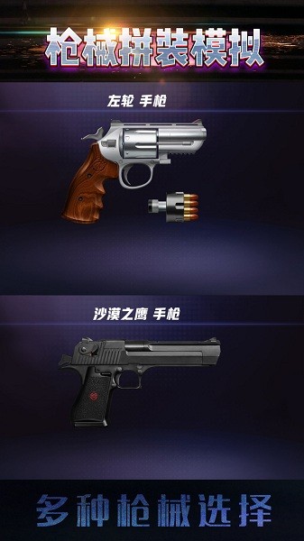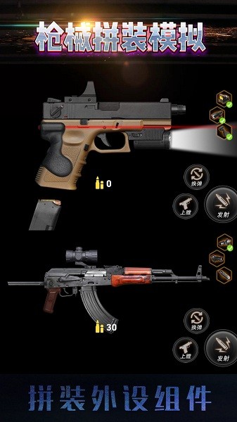 真实枪械拼装模拟通过diy来手动组装一只全新枪械,3d风格打造了更为真实的视觉体验,局内提供了多种枪支,玩家可自由选择,不管你是军事迷还是对这类模拟器游戏感兴趣的玩家都可以快速上手参与。