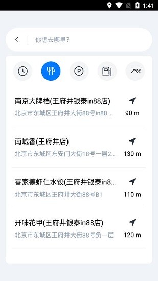 【周边POI】查看周边加油、停车场、餐厅等PO信息;