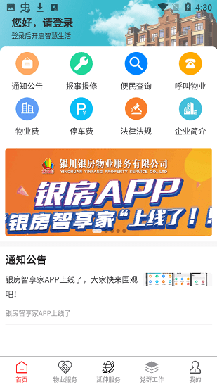 银房智享家app是银川银房物业服务有限公司为其所服务的业主提供的线上化的物业服务工具,以方便业主在线上提交物业服务需求。银房智享家app大大降低了物业公司与业主之间的沟通成本,提升了服务效率与品质。