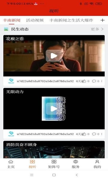 3、软件拥有新闻资讯,视听,矩阵,服务等等功能内容,可以帮助更好的引导及服务丰南。