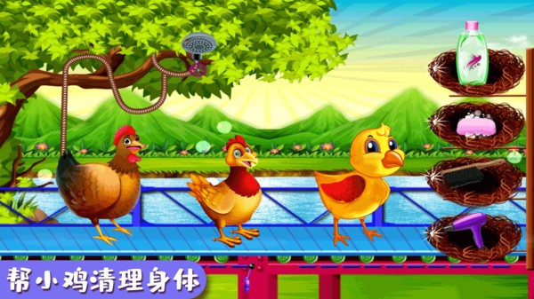 快乐小鸡动物园有着简单轻松的玩法,游戏画面风格卡通多彩,小朋友们可以在这里和小鸡一起玩耍,看着母鸡妈妈孵小鸡,并且能够帮它们捕捉虫子当食物,同时还能观察母鸡下蛋,感受生命的诞生过程,可以不断扩大庄园来饲养更多小鸡。
