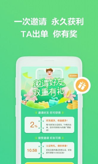 一次邀请,永久获利。每次TA出单,您均可获得推广费提成。