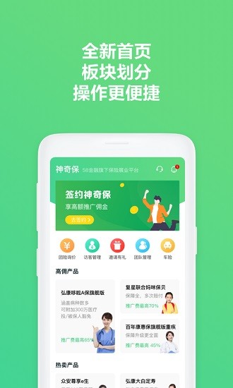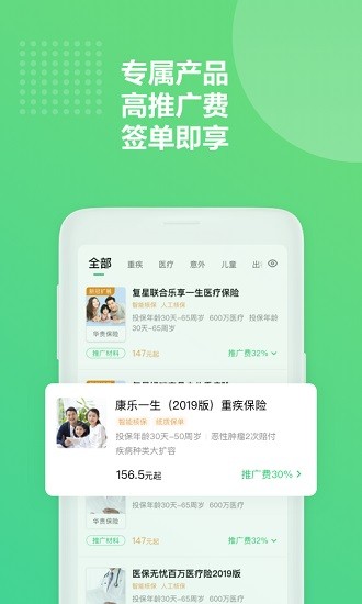 专属保险产品,高推广费,随时随地移动投保,轻松打开客户市场。