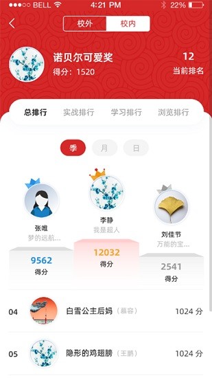4、提供总排行榜、实战排行、学习排行、浏览排行等,随时浏览榜单排名。