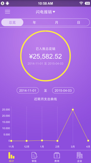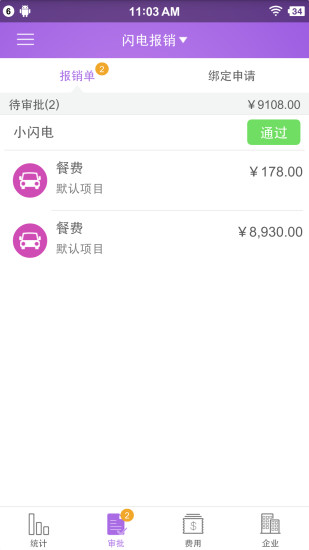 闪电报销,是一款针对小微企业的免费费用管理工具,你可以通过它轻松实现企业的移动报销、在线审批、统计分析,项目费用管理,协助企业完成经营决策。闪电报销深入研究用户需求,在企业的效率办公与费用规范化管理之间寻求最优平衡点,用财务费用数据支持企业经营决策。